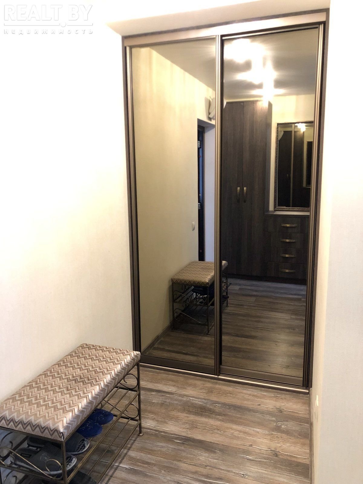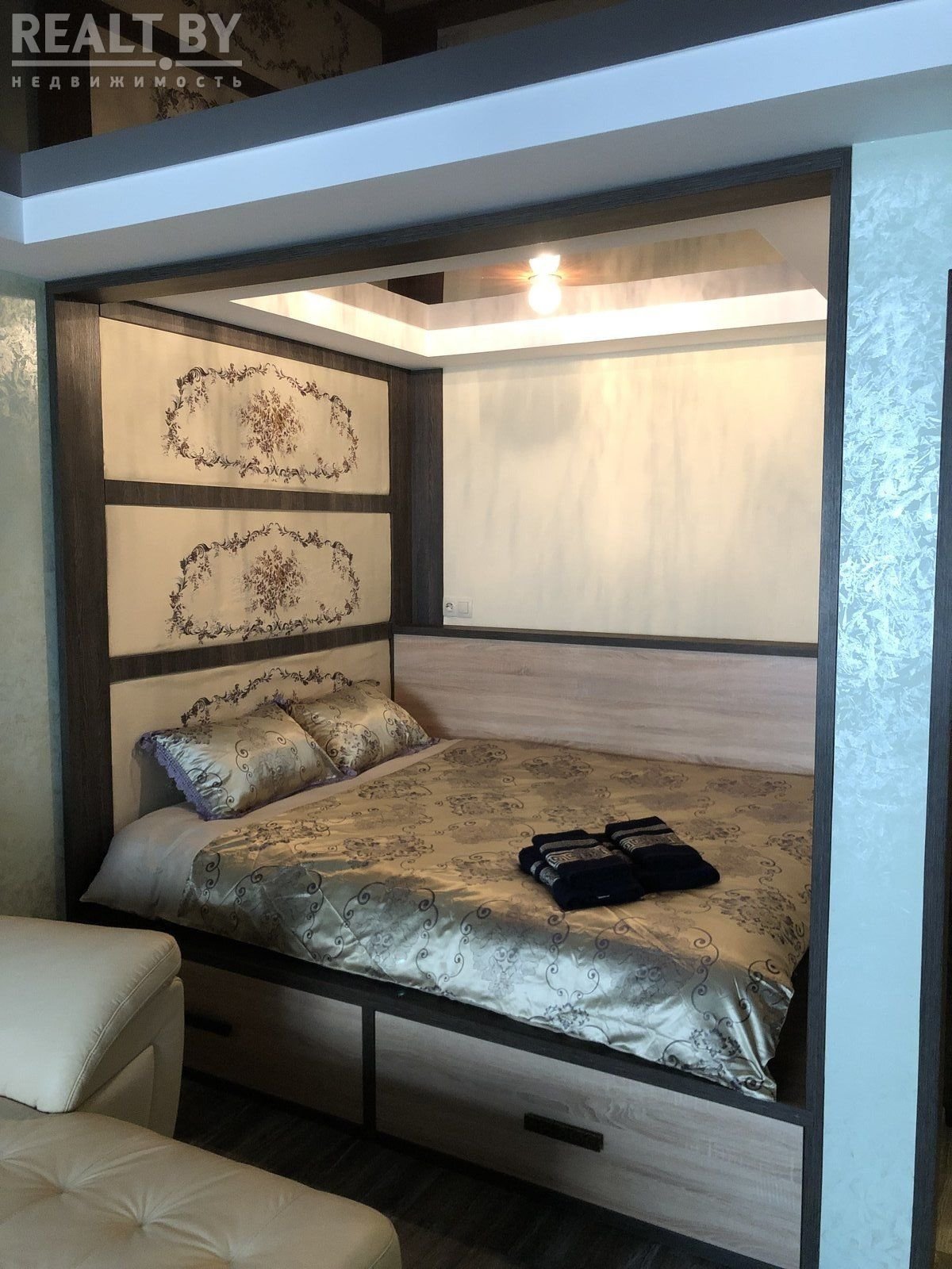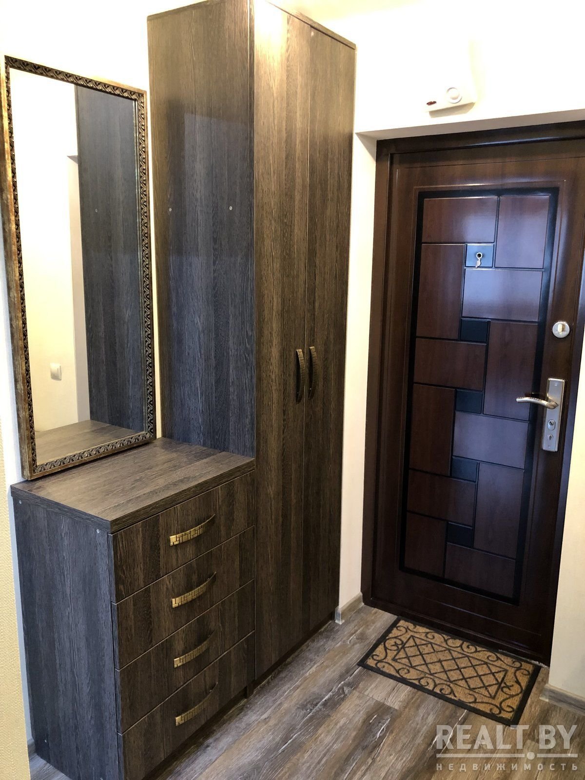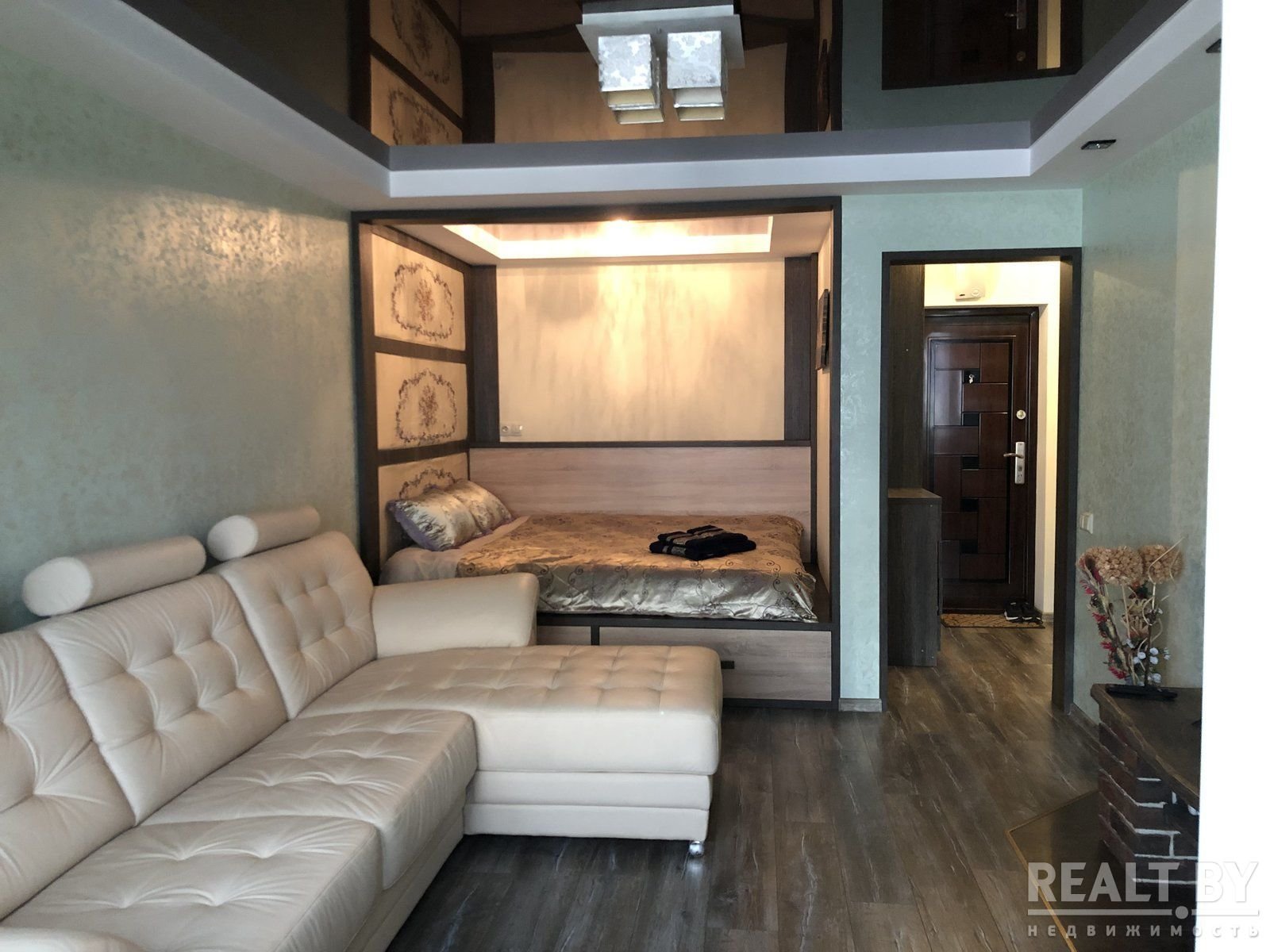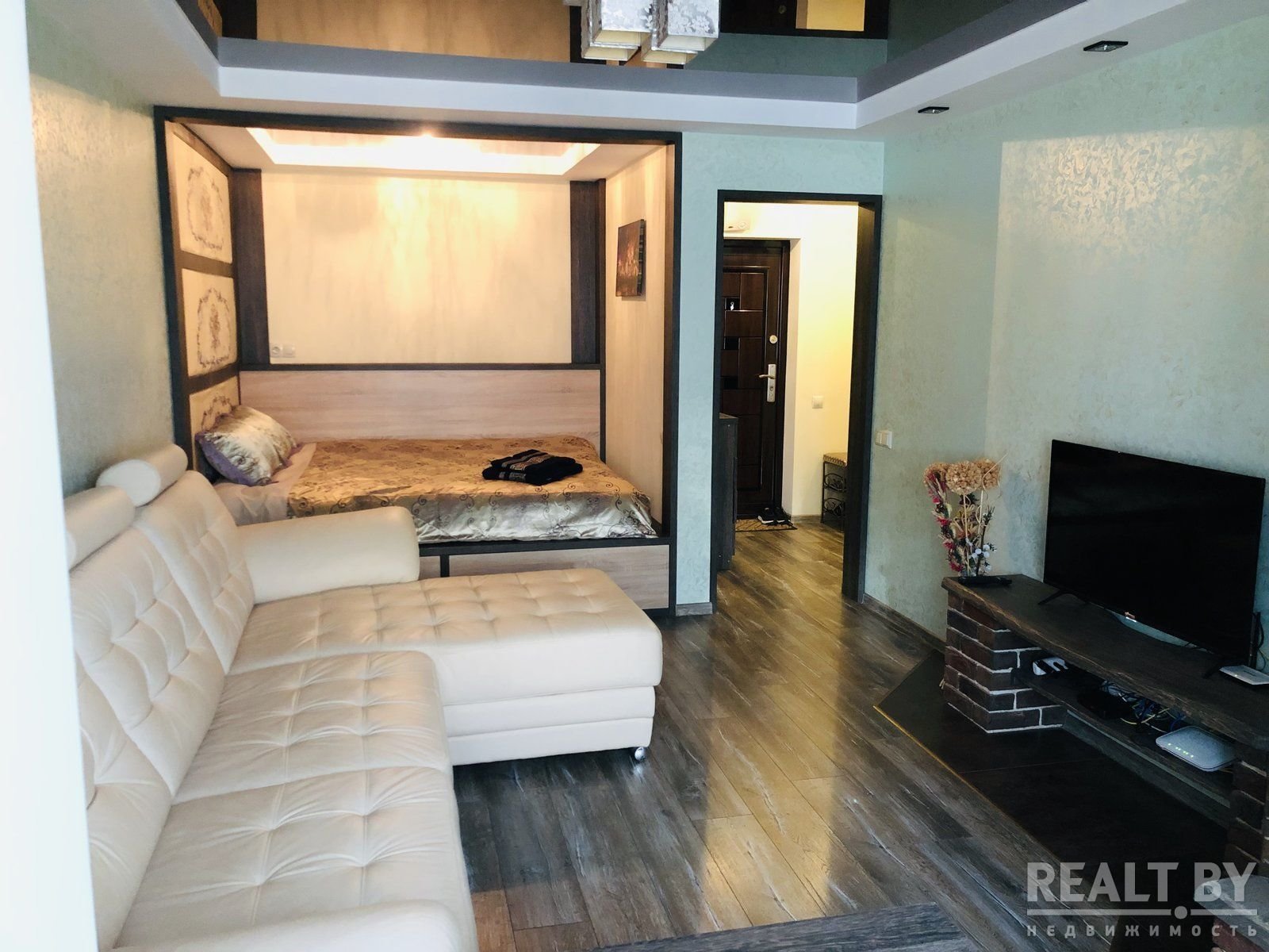 Однокомнатная квартира с зонированием и электрокамином продается в Гродно. Она расположена на ул. Томина, 14/А. Квартира продается вместе с мебелью. Одна комната здесь выполняет функции спальни и гостиной — вот как это получилось.