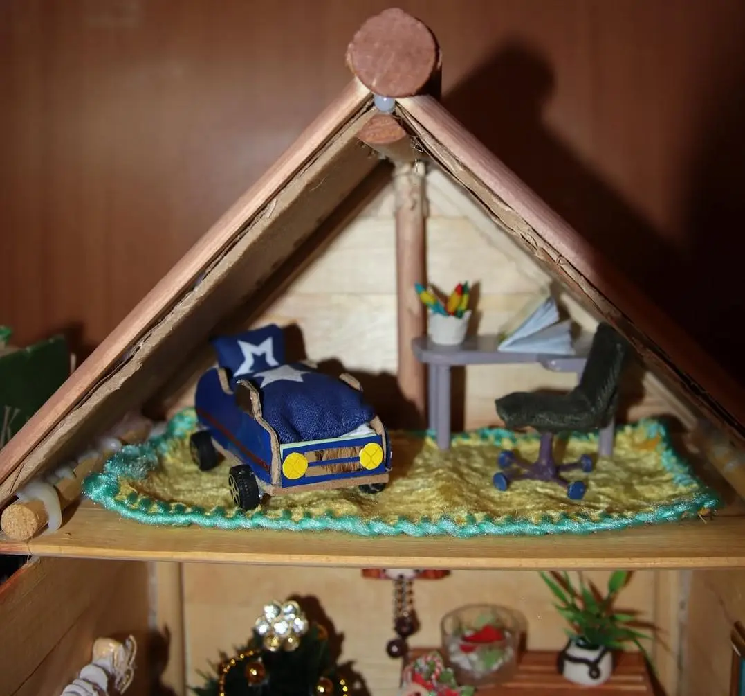 «Спустя столько лет случайно мы нашли себя в создании миниатюрных комнат. Каждый день (а иногда и ночь) после работы мы садимся за создание миниатюрных комнат на дому, но пока только для знакомых. А все началось с того, что мы решили сделать особенный подарок внуку — избу с кучей интересных деталей для игр.