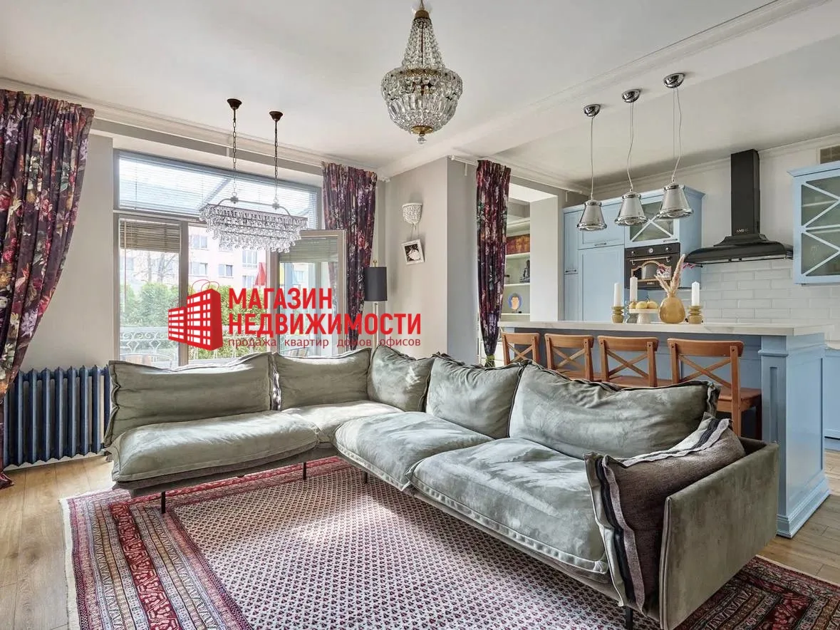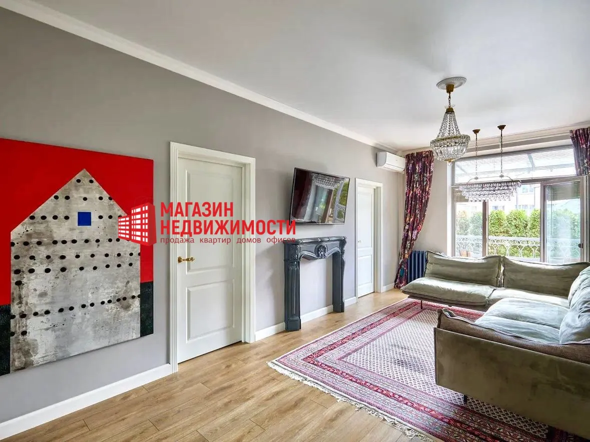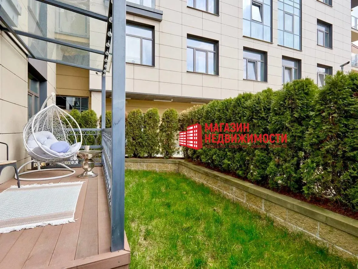 В центре Гродно, недалеко от вокзала, продается трёхкомнатная квартира с собственной террасой и небольшим участком зелёной зоны. В доме есть подземный паркинг, на крыше — общая терраса, а интерьер квартиры будто сошел с обложки дизайнерского журнала.