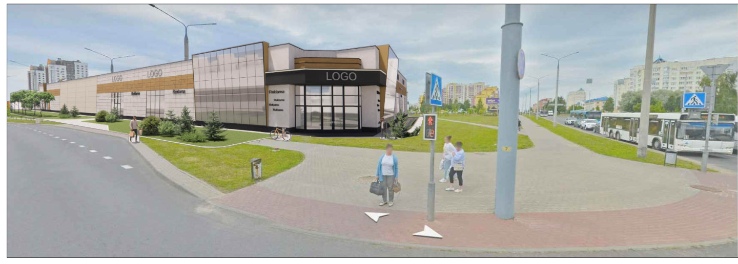 Объект общественного назначения — то есть, торговый центр, ресторан или спортзал — будет одноэтажным. Кроме основного торгового зала в здании предусмотрены отдельные помещения для аренды и кафе.