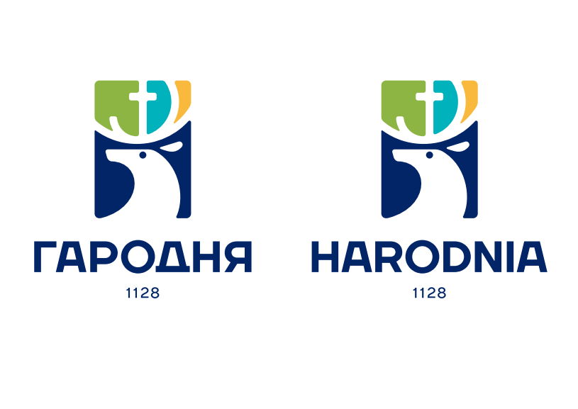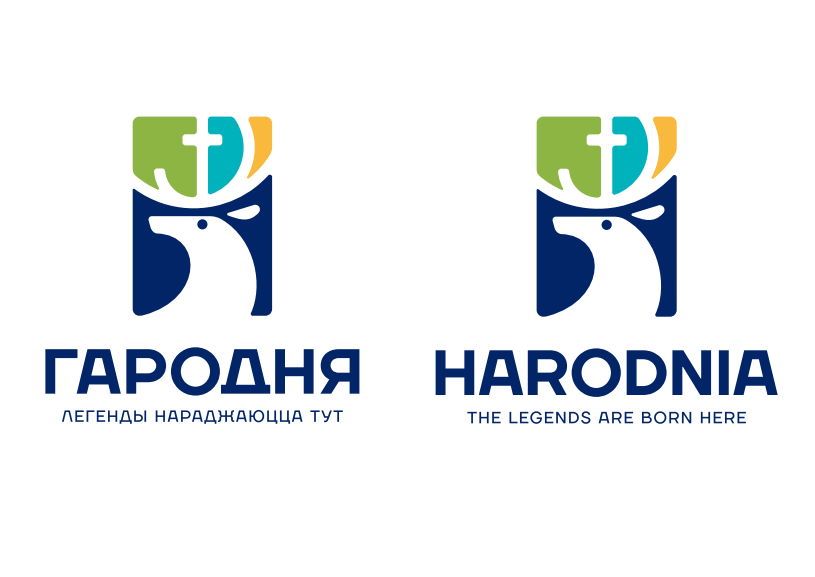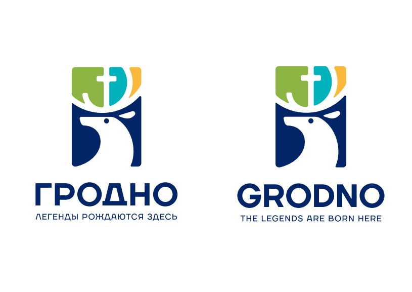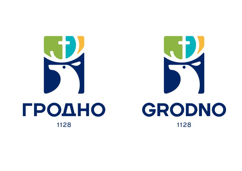 «В основе логотипа лежит герб города Гродно, а именно Олень святого Губерта с золотым крестом между рогами. Это неотъемлемая часть истории и в то же время уникальный и неповторимый символ. Четыре основных цвета логотипа — цвета герба Гродно, вызывающие ассоциации с просторным зеленым городом. Олень на логотипе движется вперед, не забывая свою историю и прошлое, о чем свидетельствует поворот его головы», — описывали авторы свою идею.