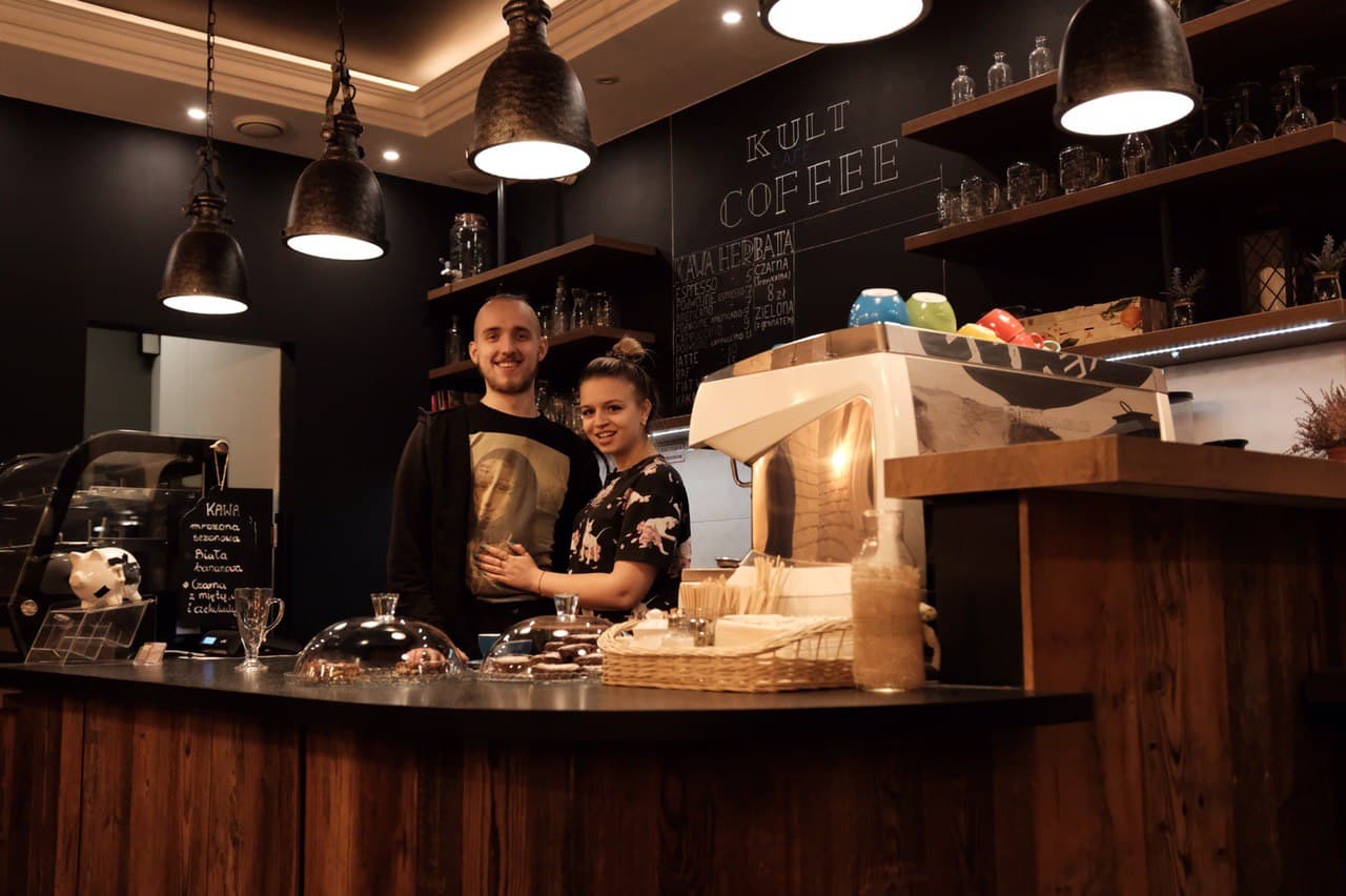 Артем и Аня получили ключи от помещения 15 февраля и вскоре открылись. Свою кофейню они назвали «Культ». Кофе у них бразильский из местной обжарочной «Кайфова кава», которую открыли украинцы. Пара добавляет, что в кофейнях Белостока обычный кофе из «Бедронки» (сеть недорогих магазинов) не прокатит, тут контингент другой. Поработав два месяца Артем и Аня поняли, что людей в Польше надо удивлять.