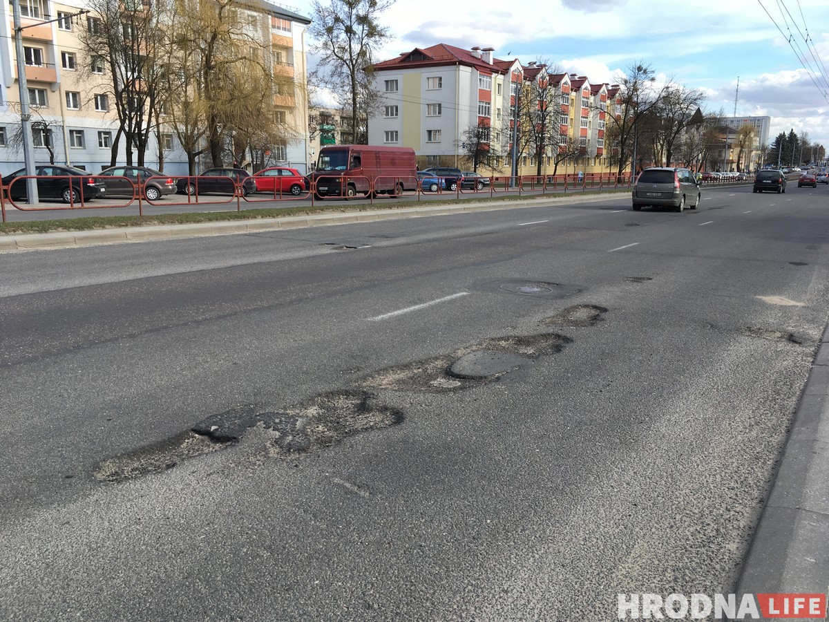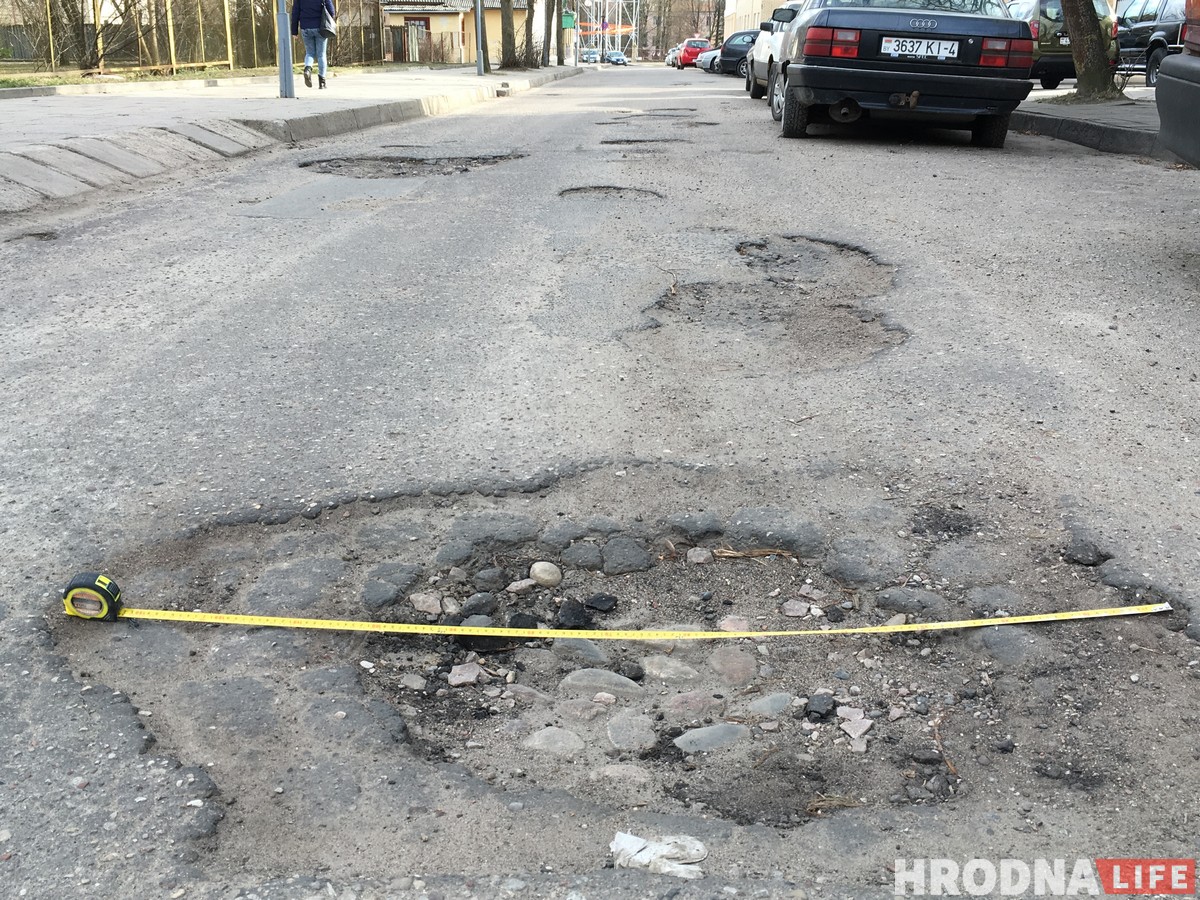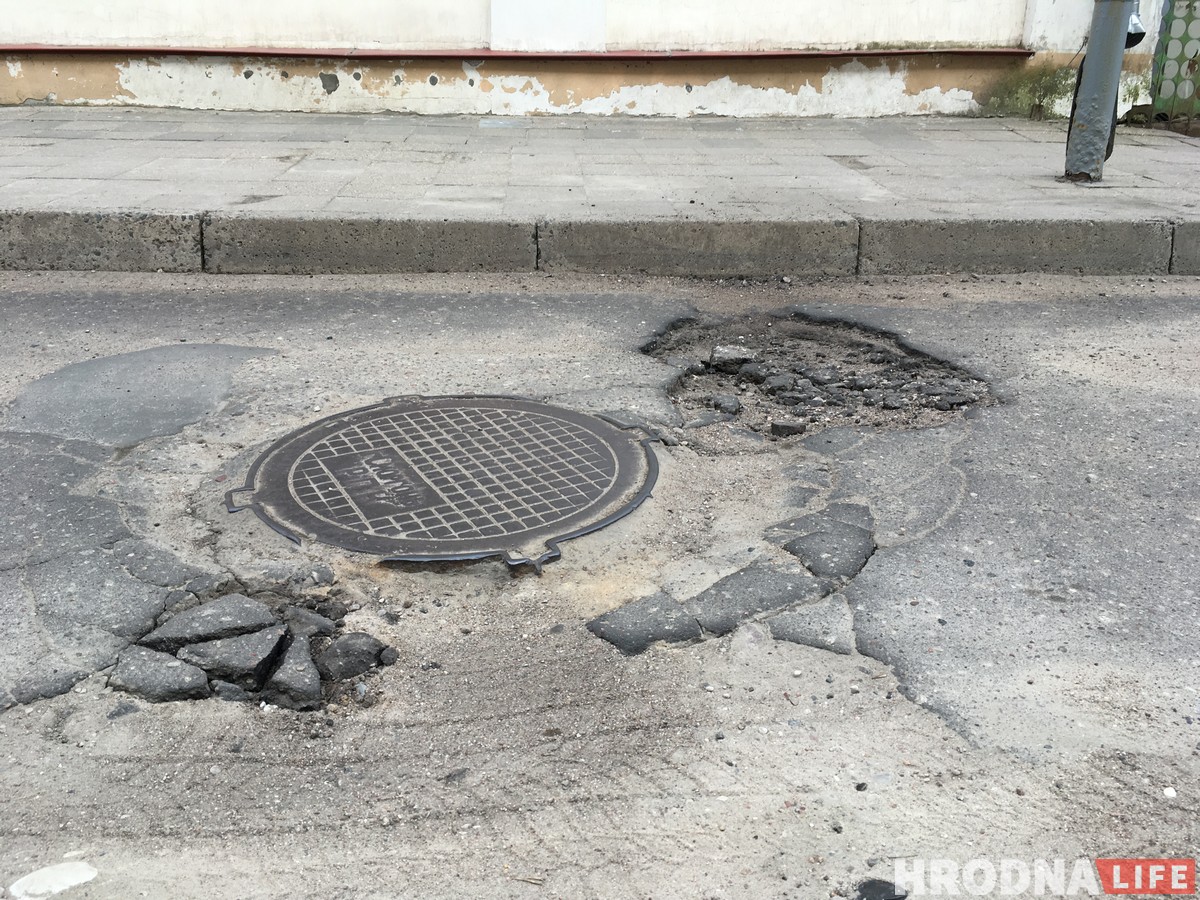 Найти в Гродно выбоины, не соответствующие ГОСТу, не сложно. Они есть и на тихих, и на оживлённых улицах.