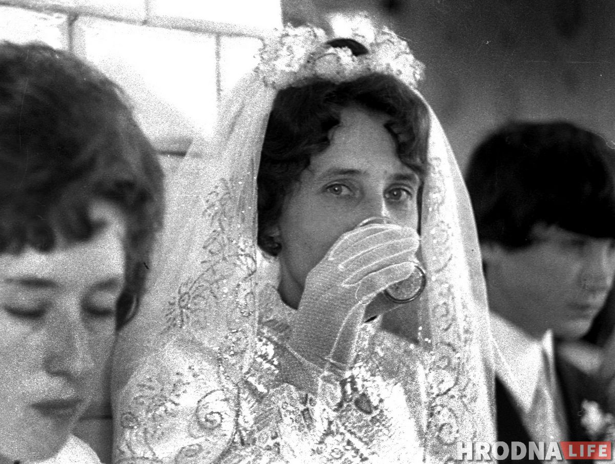 Оформили гражданский брак молодые в сельском клубе, церемония росписи прошла скромно. Когда молодожены вернулись из клуба, гости выпили и закусили. Ожидали прихода заказного автобуса,  чтобы ехать на венчание в гродненский костёл Обретения Креста Господня.