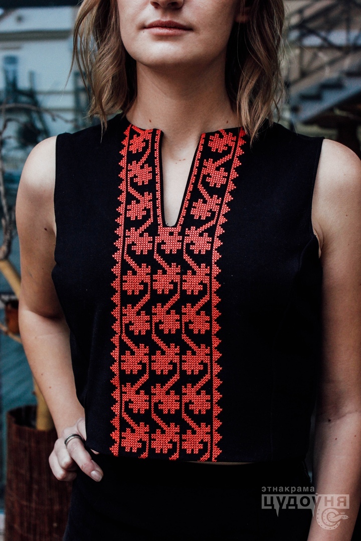 Образцы вышивки берут из книги «Беларускі народны строй» Лобачевской и Зиминой. Используются орнаменты, характерные не только для Гродненщины, но и для других регионов Беларуси. «Мы же не только гродненцам презентуем, а всей стране», — говорит Яна.