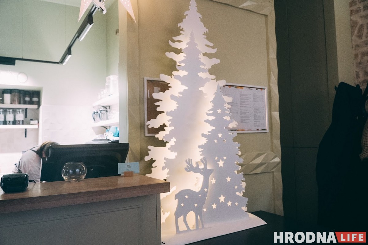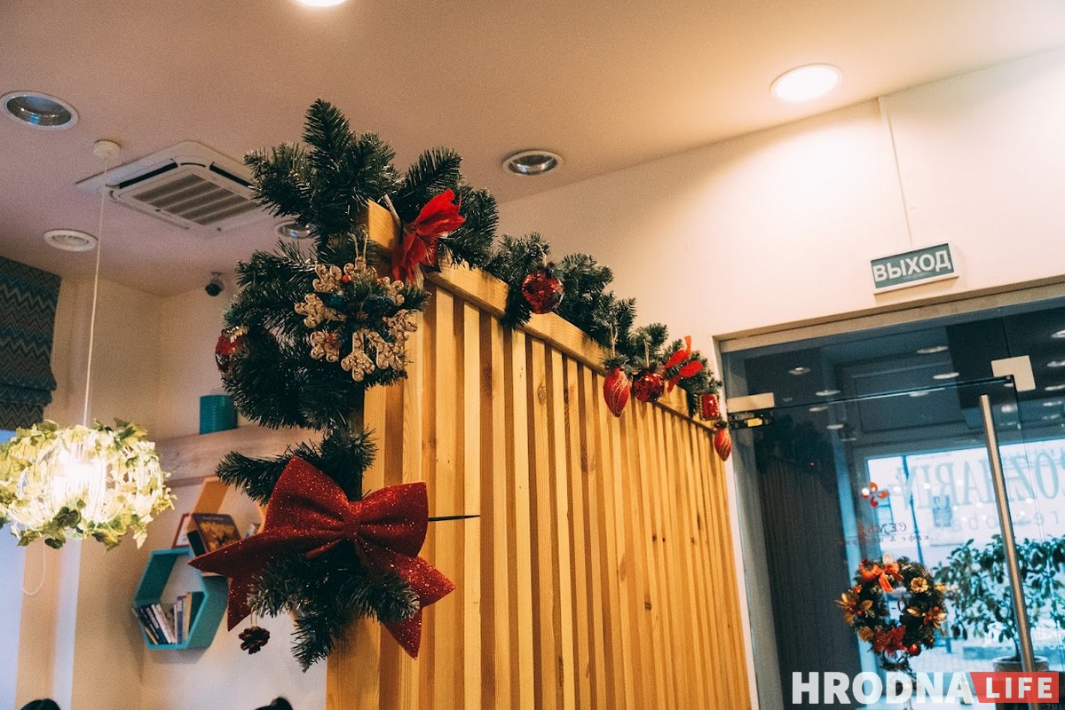 Во многих кофейнях рассказали Hrodna.life, что украшали заведения к празднику самостоятельно, без помощи дизайнеров. Кафе “Просто кофе” и “Svaboda” сами придумали дизайн: “Закрывали кофейню на полдня и украшали”. Сотрудники кофейни “Кавалава” рассказал, что даже деревянные ёлки на входе сделали сами.