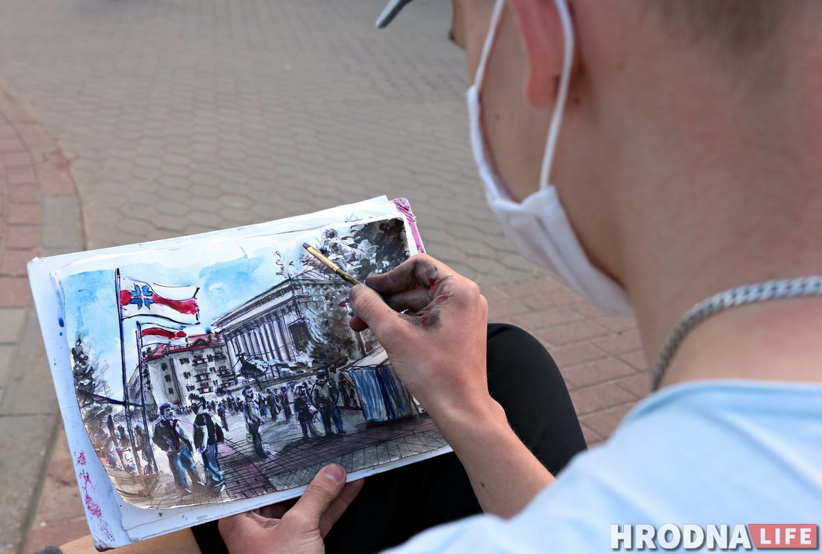 «Сегодня мы наблюдаем историческое событие, — говорит Ярослав. — Гродненцы делают свой выбор и поэтому я, как художник, решил запечатлеть этот момент. Я не хочу рассказывать про себя и свое отношение к политическим событиям в стране. Мое дело рисовать. Но я знаю, что сейчас происходит в Беларуси, поэтому готов продать картину и за вырученные средства помочь политическим заключенным».