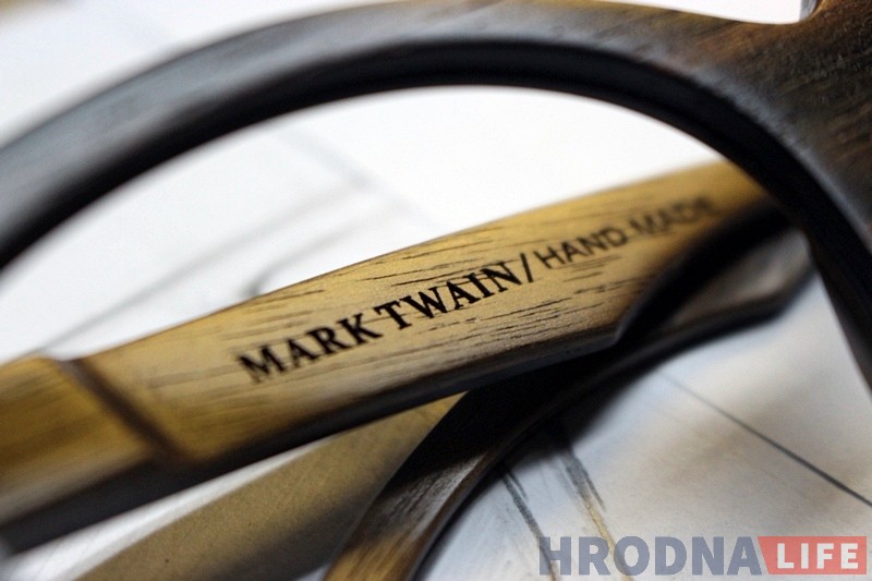 «Мы всегда хотели создавать что-то стильное и оригинальное — с очками так и получилось, — рассказывает Александр. — В 2015 году мы были первыми в Беларуси, кто стал осваивать подобный продукт. Дела не сразу пошли успешно. Первую оправу для очков мы продали только в 2016 году. Но уже через год мы сумели наладить производство и стали представлять собственный бренд «Mark Twain».