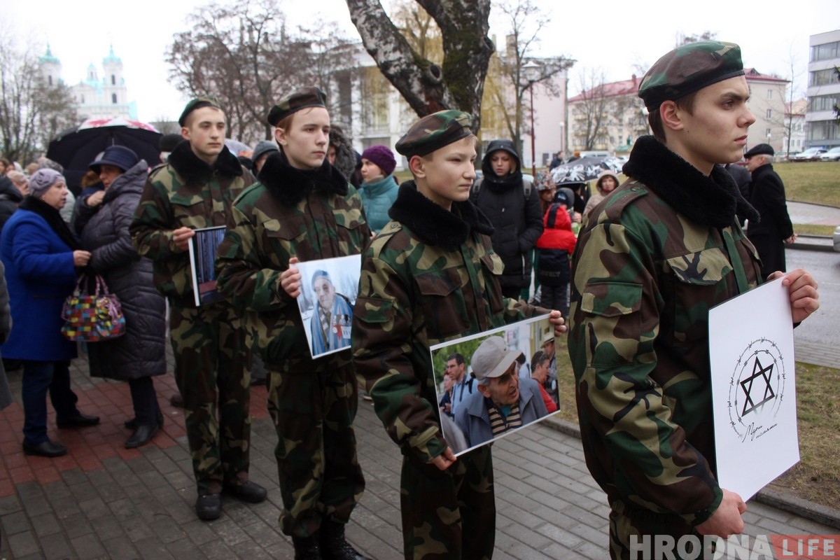 На Марш памяти пришло порядка 100 человек. Среди них были дипломаты, общественные деятели, священники, школьники, студенты и неравнодушные к истории города гродненцы. Были и потомки узников гетто, среди них глава Гродненской иудейской общины Борис Квятковский. Год назад на памятное мероприятие он приходил с портретом своего отца Мотла Янкелевича, который был родом из Сопоцкина. В этом году по состоянию здоровья он пришел без него.