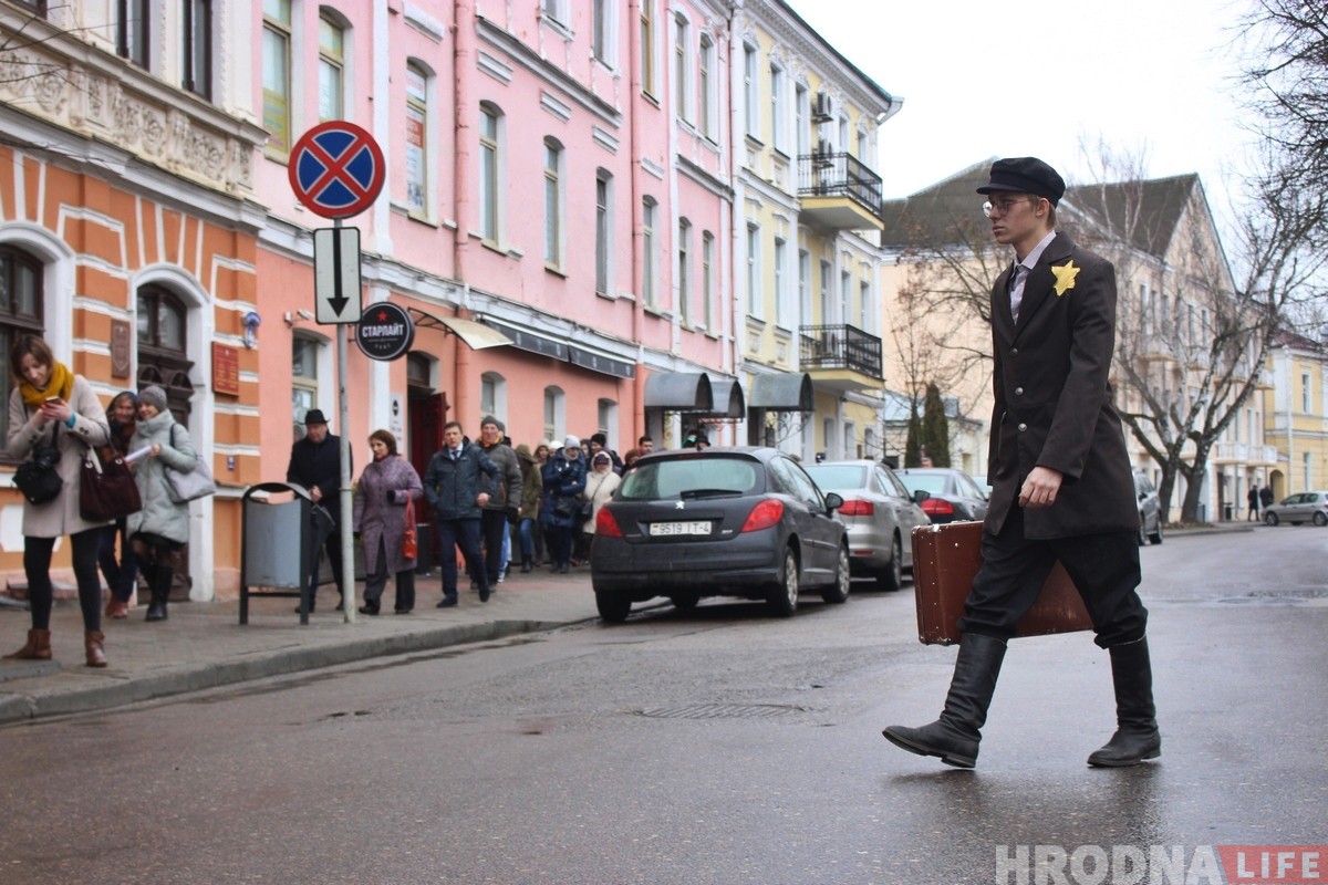 Участие в памятном мероприятии приняли актёры гродненского фрик-театра «Гексоген». В 2019 году это уже второе костюмированное представление по теме трагедии евреев Гродно. Ребята делают это на добровольных началах, главная задача актеров — показать трагедию и в каких условиях оказались гродненские евреи во время Второй мировой. В конце войны из 29 000 гродненских евреев в живых осталось около 300 человек. В родной город вернулись лишь несколько десятков.
