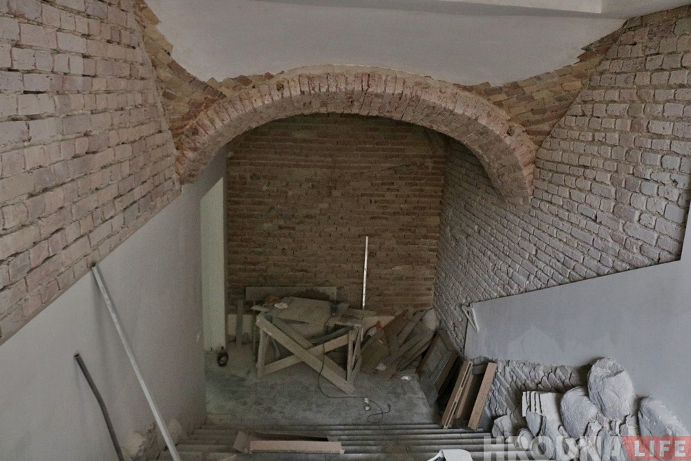 «Объект сложный. Нужно было серьёзно поработать, — рассказывает собственник помещения Владимир. — Тут в советские годы было бомбоубежище на случай ядерной войны, всё было заштукатурено и заставлено разными предметами. Все работы нужно было согласовать с Минкультом, чтобы ничего не нарушить. Подвал очень старый, кое-где переделывался. На восстановление ушло с перерывами около пяти лет».