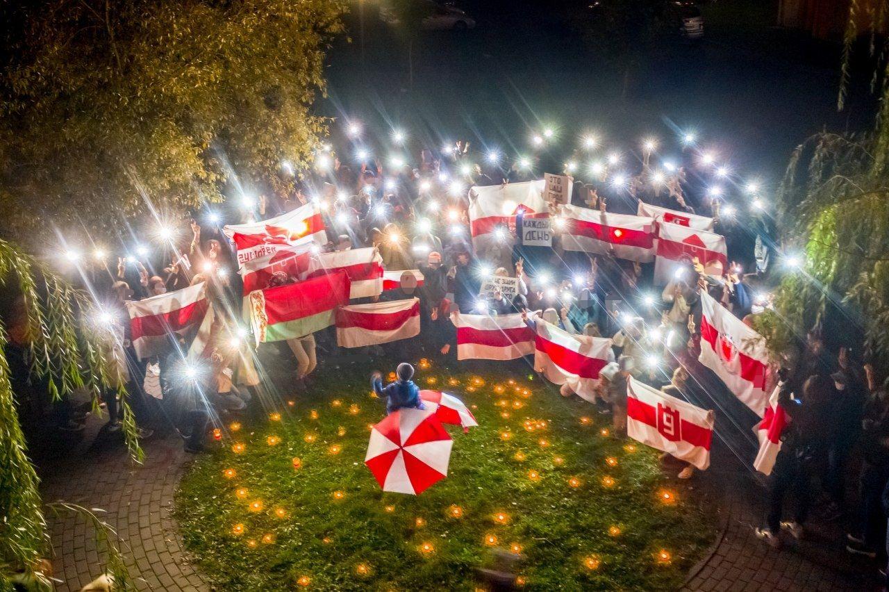 7 октября на Вишневец “в гости” к местным жителям приехали горожане из разных частей Гродно, с флагами своих районных сообществ. Были свечи, самодельные сладости, песни, бегали дети. Встреча длилась около двух часов, собралось около 80 человек. Соседи собираются уже больше месяца, чтобы общаться, поддержать друг друга, ведь делать это в городе не позволяют власти.