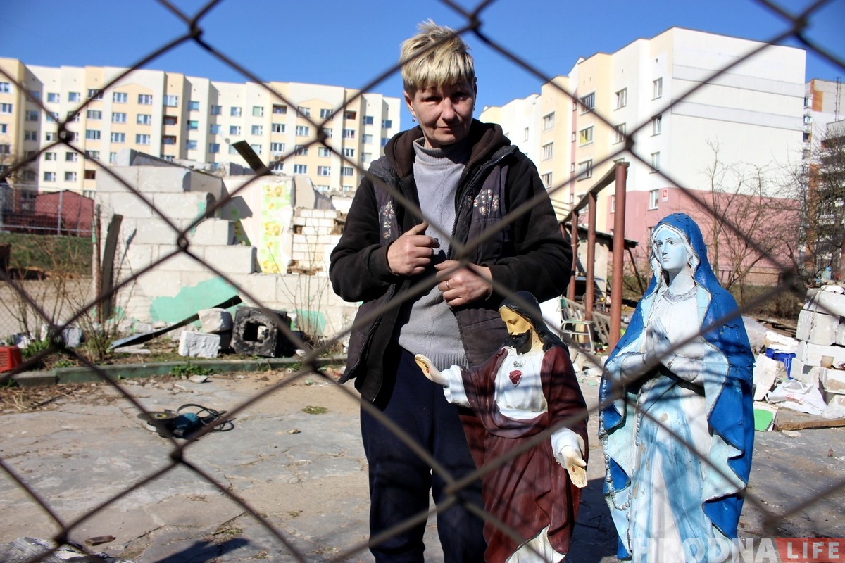 «Лучше бы нас не трогали. Комнатку не сравнишь с дачей, — говорит Галина Рутько. — Мы всю жизнь росли на земле, а сейчас нам даже не предоставляют никакого куска. Вот мы хотели взять землю за городом и перенести дом. Проехали по окраине, сколько дач заброшенных, но никто взамен ничего не дал. Даже и не знаю, куда государство смотрит. Нам сказали, что в Гродно дома не переносят. Выбирайте, либо деньги, либо двухкомнатную квартиру в соседней многоэтажке. Выбрали последний вариант, переезжаем туда втроём. Собака, два кота пойдут тоже с нами в квартиру, на улице их не оставишь же. Статуи святых отдадим в первый дом, сказали, что до сентября его сносить не будут. А там уже, наверное, в костел заберут, как и крест при въезде в бывшую деревню. Вот и всё, скоро закончится эта история».