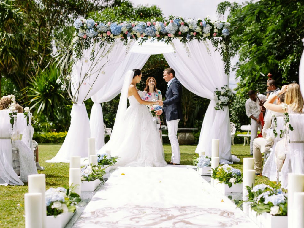 Здесь предлагают несколько мест для регистрации: площадку у фонтана, лес, лобби-бар, зал “Веранда” и главный зал. Чтобы организовать регистрацию в отеле, нужно оплатить аренду.
