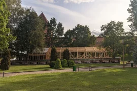 Новое заведение появится непосредственно около стен Лидского замка. Уже установили деревянный каркас. На фото видно рекламные вывески, судя по которым, в заведении будут подавать…