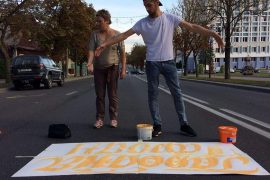 Зубры в цветах, орнамент и яркие краски: аллею из картин на асфальте презентовали в День города, пишет grodnonews.by.