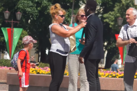 В Гродно провели социальный эксперимент. Суть его была в том, что по очереди темнокожий иностранец и белорус подходили к проходим и просили помочь завязать…