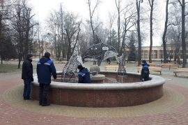 Сотрудники «Горсвета» устанавливают новогоднюю иллюминацию в Гродно. Уже 6 декабря новые световые декорации появились на площади Ленина и в парке Жилибера. Здесь старый фонтан…