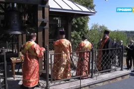 Около Коложской церкви 18 мая открыли колокольню. Предварительно планировалось, что колокола впервые прозвучат в День Победы 9 мая. Колокольня возле Коложской церкви. Скриншот «Гродно…