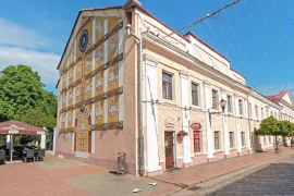 Внимание местных жителей и туристов на пешеходной улице Советской в Гродно привлекает монументальное произведение — панно «Фестивальное», выполненное в технике сграффито. На нем изображены…