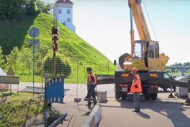 На мосту по улице Рыбацкая в Гродно, закрытом уже больше года, начали ремонтные работы. Рабочие разбирают ограждение и снимают с моста плиты. Пролетное строение…