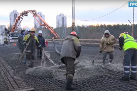 На мосту по улице Поповича приступили ко второму этапу заливки бетона – монолитной плиты пролётного строения №5. На это уйдет 16 часов работы и…