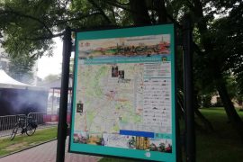 На стенде в центре Гродно заклеили флаг Евросоюза и упоминание о финансировании им проекта “Шлях Тызенгаўза”. Стенд с велосипедным маршрутом, установлен в рамках проекта,…